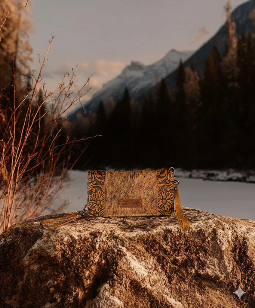 Unique Western Design – Combines luxe hair-on cowhide with intricate floral tooling for a bold, rustic-chic look