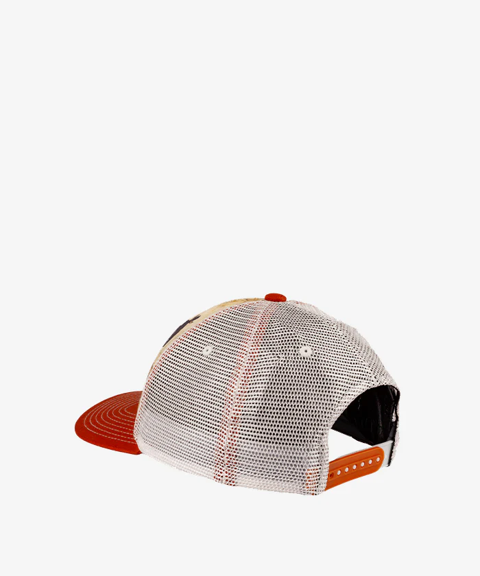 - Pre-Curved Bill – Burnt red brim with detailed stitching for sun-ready coverage