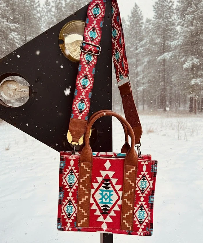 The Wrangler crossbody tote bag pairs rugged Southwestern aesthetics with modern practicality. Crafted from durable canvas and synthetic leather, it offers secure tech-ready storage with a top zipper closure, a spacious interior, a zippered pocket, and a padded electronics compartment to protect gadgets and essentials.